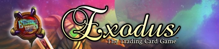 Exodus Trading Card Game NewsGreetings Everyone, The first issue of the Exodus Trading Card Game E-zine is here! First, we'd like to take a moment to thank you for signing up for our E-zine (like a magazine, but for e-mail)!