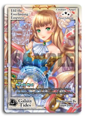 In the most dramatic circumstances (which happens far too often), you can be at 1 Life Point and your opponent at all 10 Life Points. Summon this card and suddenly your Life points are back to 10! But be careful, if you summon her while you're ahead, your Life Points will drop to match your opponent's! Pair this beautiful card with some of your favorite combos and your comeback just got a lot more epic! With unique artwork by the talented Yujin, this booster Box Topper will come as a stunning foil and will no doubt be popular in competitive decks. **Efil is the fixed secret rare box topper for Galaxy Tides (61/60) and will NOT be found in packs, only as a loose promo in sealed boxes. Come out and get free comic books and a free rare Exodus card on Saturday, May 3rd! While you're at it, meet one of Exodus' artists. American artist Wes will be there in-person to sign the cards he illustrated including Amberblade Dragon, Cerulean Stormstream Dragon and the infamous Airship Corrodestria! And we bet if you simply ask him, he'd be willing to play a game with you! The Exodus Trading Card Game will be the featured TCG at Gamex Strategicon 2014 in May! Find the game in the collectible room May 23 - 26. Battle it out with other Drifters for ribbons and top prizes in the weekend tournaments, and get your hands on the new promo cards. Jake and Lexi, the game developers will be there to show you how to play and answer any questions.