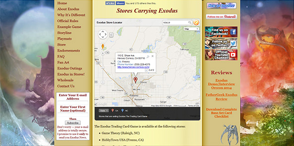 NewsWhat's up everyone! We're bringing you the September issue of the Exodus Trading Card Game Newsletter! In addition to this month's regular issue, we'll be sending out special weekly editions with more info and goodies leading up to the October release date. Check out some of the new features coming soon to the Exodus website! ![]() Upcoming Events![]() Stores in USA and Canada will be running official Launch Parties throughout October, followed up by sanctioned tournaments through November! You can attend a Launch Event to stand a chance at winning a Champion playmat, oversized art cards, promos, cards autographed by the artist, and more! We are always adding new stores, so check back often and remember to ask your local shop to e-mail us in order to get registered.