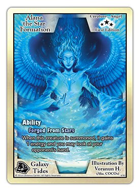 New Videos, Cards, TournamentsWe are working hard on many new things right now, including a Galaxy Tides Commercial, fast-paced gameplay videos, promo cards, Kits, a World Ranking system with join-able Guilds that are affected by the decks you play, and some other secret things we can't talk about yet.Official Booster Draft rules will go up on the site soon. In the meantime, why don't you let us know which cards or Exodus characters you would like to have as a downloadable wallpaper?