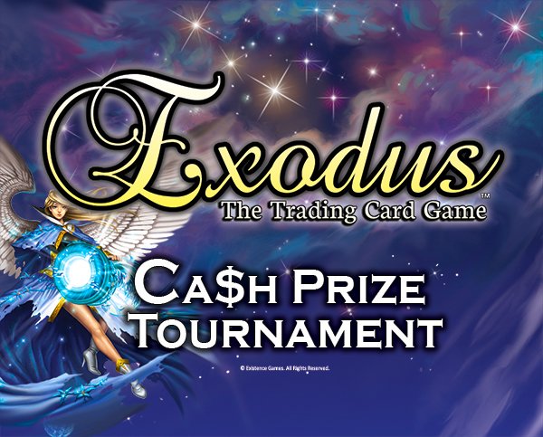 Cash Prize TournamentThis Saturday, February 14th, players from all over will be competing in the Collectibles room (La Jolla ballroom) at Strategicon in the first Exodus Cash Prize Tournament!Hundreds of dollars are on the line, with guaranteed payouts going to 1st, 2nd and 3rd place! Entry fee is $13 per person, which covers Top 3 prize money and sealed packs. Build your best Exodus deck and join the action at 6:00 P.M. this Saturday!