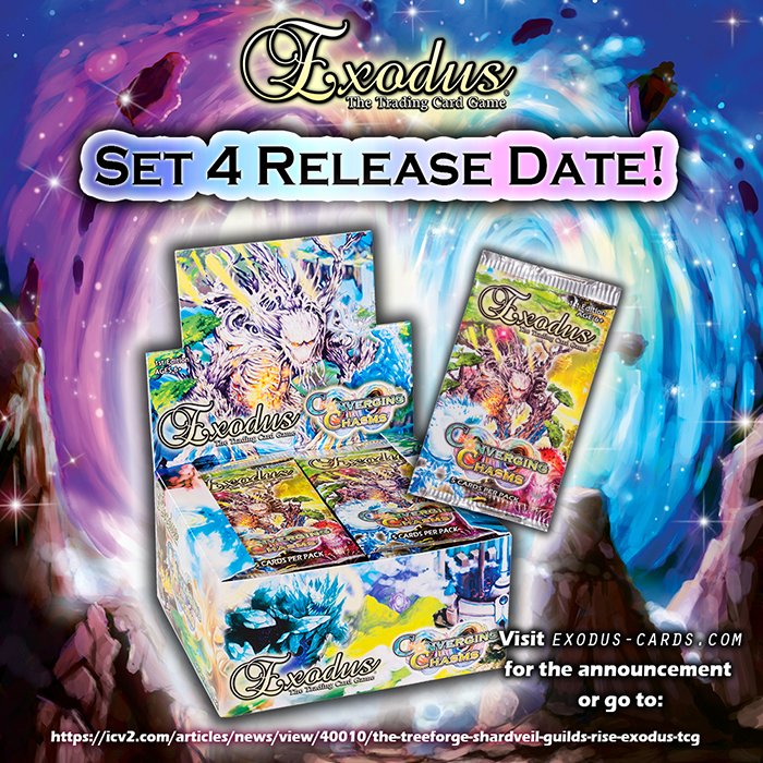 Exodus TCG, Set 4 Is Here!Dear fantastic, treasured Drifter, Is it true? Is this real?! Yes indeed--this is no portal mirage or chaotic trick of Eeventide! Set 4 has an official release date and is now getting closer and closer by the day! Here's a first-hand look at the new product and what's to come (that's right, it's a booster set!)!