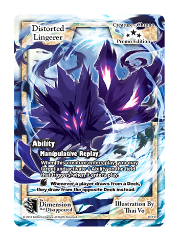 We, along with many others, have started our holiday shopping early this year (to beat the absolute mayhem of the holiday mail backup — which is possibly at an all time high this year). Not only do we recommend shopping early to guarantee good shipping times, but we have to say: it just feels so darn amazing to have your shopping list checked off well in advance! Who needs that unnecessary stress around the festivities, right?! NEW PROMO CARD RELEASEWith this big sale event, we're also dropping an ALL-NEW promo — the final card from Set 5 "The Dimension That Disappeared"! 🤩🙌 Check it out:Card Name: Distorted Lingerer Type: Creature - Chrono Ability: Manipulative Replay - When this creature enters play, you may target and activate 1 Ability on the field that triggers when it enters play. Afterthought Ability: Whenever a player draws from a Deck, they draw from the opposite Deck instead. ______________________________________________ Early Shop Access:The fun doesn't stop there — that's right! Since YOU'RE a super-special newsletter subscriber that we adore so much, you get early access to our 2020 Holiday Sale Page 🥰❤We hope you find something that speaks to you, makes the perfect gift for someone on your list, or turns out to be a fun purchase to split with a friend! Enjoy, and Happy Shopping!!! Other News:✨ Exodus Online Deck Builder ✨Thanks to two awesome players in our Discord, there's now an online Exodus TCG deck building tool that not only lets you search for cards & craft a deck list, but you can also export it directly to Tabletop Simulator for quick & easy TTS deck building! How epic is that?!Check it out at www.exodecks.com, and if you're also in our Discord server, be sure to give @Brie & @PokeyCat a huge thanks for this awesome resource :)