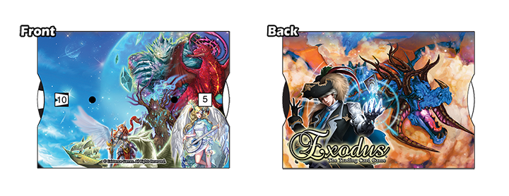 Exodus Life Counters are now available for purchase! These snazzy double-sided, full-art Counters are a great accessory and necessity to have while playing Exodus The Trading Card Game. They keep track of score for two players and go up to 15 Life Points, although the game normally starts at 10. (Could this possibly be foreshadowing Life Point gain in the upcoming expansion?) Life Counters are available through our online store as well as game stores across the nation that carry the Exodus TCG.