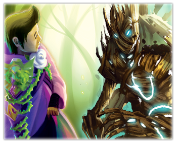 “Hang in there, Oli!” he heard one of his Guild mates call out. But then he was slammed again against a nearby tree that shuddered and fell to the ground as its energy was leeched. Oli’s vision darkened as he felt a harsh ringing in his ears. The rampaging Treefolk raised Oliver to its face as if to look at him one last time before it killed him. Oliver Rose focused hard enough to see into those menacing blue eyes, eyes that bore into him like a creature’s never could. No, there was something behind the monster’s gaze that felt—human.