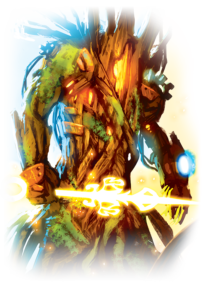 The newly summoned treehouse-sized creature reached down and plunged its glowing clock-spear directly through Carcery. A warm orange light rained down from its gaping face as Carcery gazed up at his new obstacle. A range of onlookers gasped in awe at the friendly Treefolk they’d never seen before, amazed that their leader had been hiding something so extravagant until a time like this.
